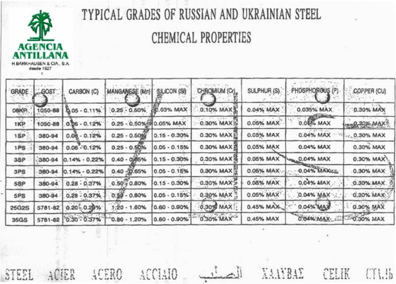 Palanquillas Russia / Ukrania ST Standards Types